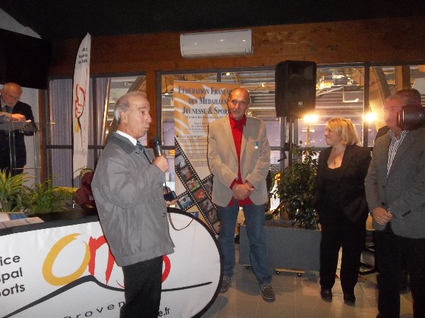 Allocution : Jacques Bonnet Aix en Provence : jeudi 21 novembre 2013 18h30 Madame le Maire, Monsieur l'adjoint Délégué aux sports Mesdames, messieurs, les Elus, Mesdames, messieurs, les Présidents, Mesdames, mesdemoiselles, messieurs, Avant de vous présenter notre Fédération, je voudrais tout d'abord remercier Madame Maryse JOISSAINS MASINI, Maire d'Aix en Provence, son adjoint délégué aux sports, Monsieur Francis TAULAN et sa Municipalité qui reçoivent aujourd'hui ; la Fédération Française des Médaillés de la Jeunesse et des Sports et le Comité Départemental des Bouches du Rhône. Cette cérémonie a été mise en œuvre par l' Office Municipal des Sports d'Aix en Provence et de son Président Monsieur Jean Marc BAURES avec toute son équipe. Notre Fédération fondée en 1951, reconnue d’Utilité Publique placée sous le haut patronage du Président de la République et du Ministère de la Jeunesse et des Sports, est régie par la Loi de 1901, elle compte plus de 18 000 licenciés regroupés dans : 102 Comité Départementaux et 22 Comités Régionaux. Ø C’est une force de réflexion et de proposition écoutée et reconnue, des instances publiques et du mouvement jeunesse et sports grâce aux références de ses membres issus du milieu associatif et sportif. Ø Son but est de regrouper toutes les personnes titulaires d’une distinction officielle décernée par le Ministre en charge de la Jeunesse et des Sports, ainsi que de soutenir toute action pour la valorisation du bénévolat en milieu ordinaire et pour les personnes handicapées. Ø Elle apporte l’aide sociale en priorité aux membres adhérents, pour maintenir et de développer entre eux des liens d’amitié et de solidarité. Ø Par son appartenance à la Commission Nationale d’attribution de la médaille Jeunesse et Sports, elle est le garant des valeurs que représentent les distinctions du Ministère de la Jeunesse et des Sports. Cette cérémonie aujourd'hui répond aux actions souhaitées par notre Fédération, parmi lesquelles l’on trouve l’hommage et la reconnaissance du travail bénévole des dirigeants, des entraîneurs, des sportifs que vous êtes tous, au sein de l’activité que vous avez choisie, que vous aimez, et que vous servez. Les bénévoles qui s’engagent et s’investissent dans cette voie, ont droit à des marques et des témoignages de remerciements et plus encore de reconnaissance. Aujourd’hui, nous allons décerner à : douze récipiendaires (12), la médaille de BRONZE ", à quatre récipiendaires (4), la médaille d'ARGENT, et à deux récipiendaires (2), la médaille d'Or du Ministère de la Jeunesse et des Sports. Ce sont donc 18 bénévoles qui vont honorés pour tout ce qu’ils ont fait, donné, apporté et continuent de faire chacun dans sa spécificité. Car pour la reconnaissance de leurs actions bénévoles : La médaille de la Jeunesse et des Sports reste une des plus belle distinction Honorifique Française. Sans plus attendre, avec Madame Maryse JOISSAINS MASINI, Maire d'Aix en Provence et les membres de notre Instance Départementale titulaire de la médaille OR Jeunesse et Sports vont remettre ces distinctions au nom de Madame la Ministre de la Jeunesse, des Sports et de la Vie Associative. Je vous encourage tous et toutes, par vos applaudissements, à prouver à ces hommes et à ces femmes, tous méritants, toute l’amitié et la considération que vous leur portez. Je tiens une fois encore à ré exprimer ma profonde gratitude aux personnalités présentes pour le chaleureux accueil qu’ils nous ont réservé. Je vous remercie de votre précieuse présence et de votre aimable attention. Jacques Bonnet Jacques ROUJON, Président du Comité Régional assisté de : Bernard CHABLE - Roger DAMIANI - Julien FENECH - Laurent GUIRAO - Yves MONNET René MOREL - Jacques NICOLAÏ - Robert POURRET - Michel SCHMIEDER Tous médailles OR Jeunesse & Sports vont poursuivre cette cérémonie